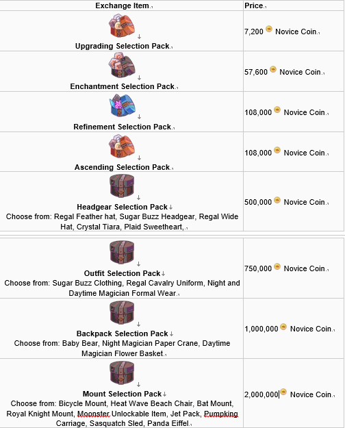 Novice Coins are available in four ways (Odin Blessing Donor, Daily Instance with a newbie, MVP/Mini hunting with a newbie , and 7-Day no login). A maximum of 10 A Travel Companion Pack can be received per day; this amounts to 30,000
