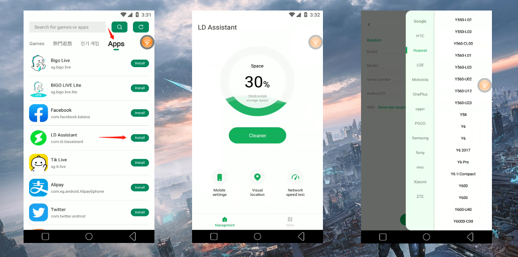 It can help you complete functions such as System Cleaner, Mobile settings, Visual location, and Network speed test;