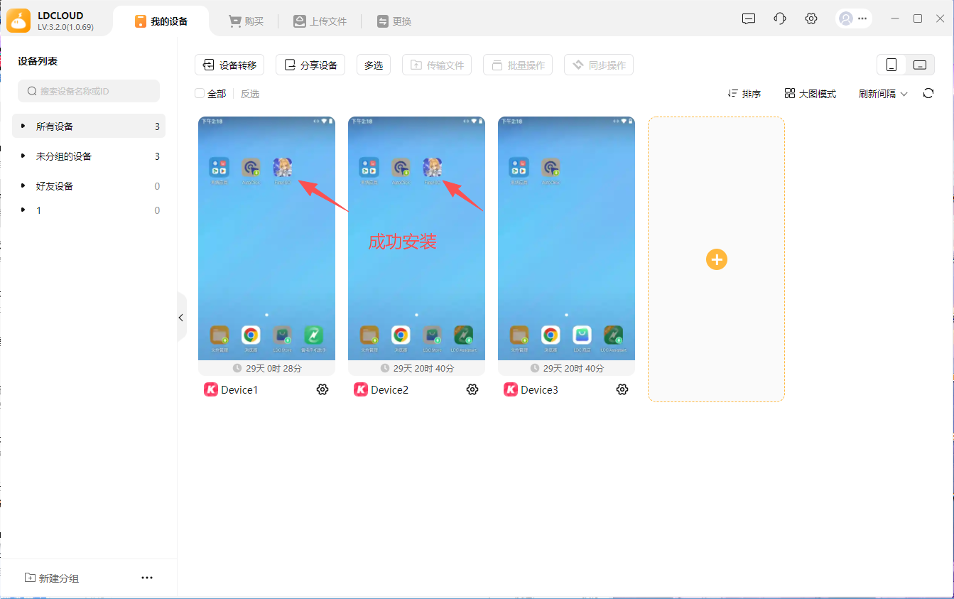 第二步:等待安装完成后,返回主页面就可以看到应用已经安装进云手机里面了,