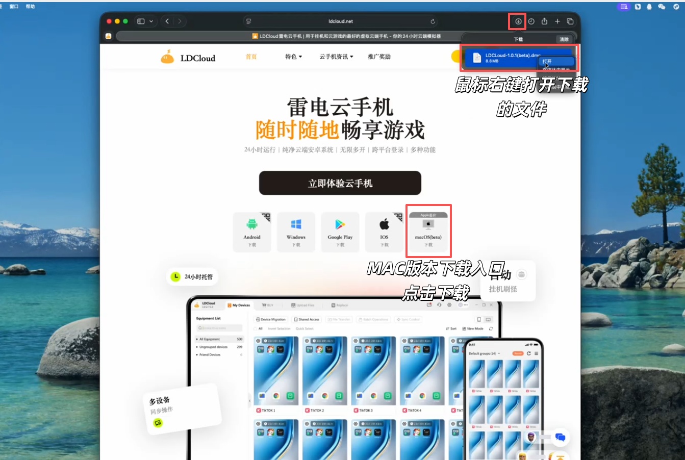 第二步:在官网找到macOS(beta) 下载入口,点击开始下载,等待文件下载完成