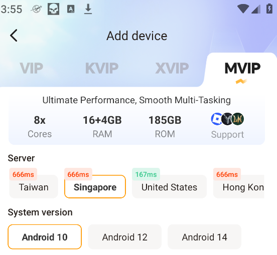 Metode clone ini hanya mendukung cloud phone MVIP Android 10