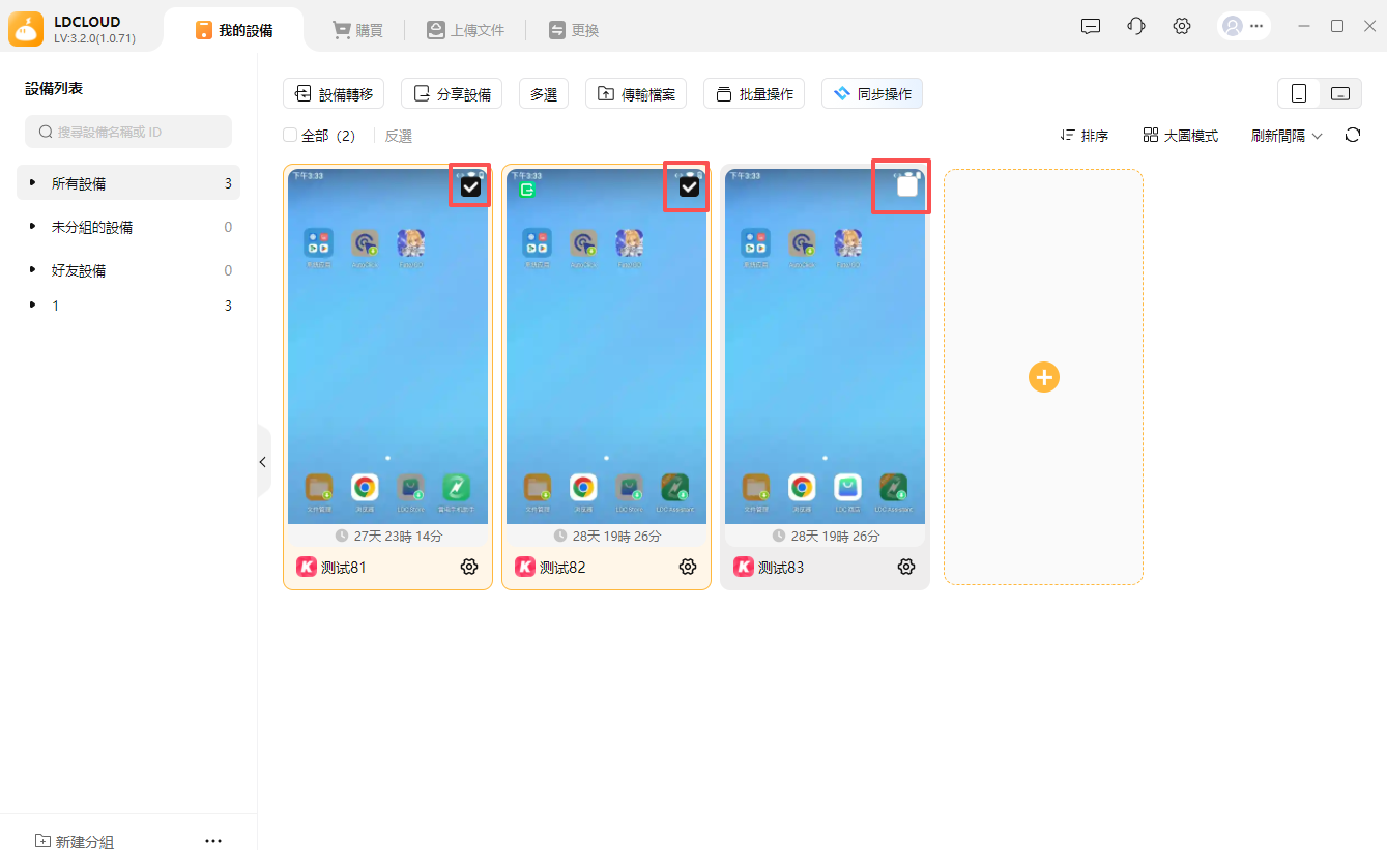 登入用戶端後,於裝置列表中,勾選所有您需要執行同步操作的雲手機裝置,